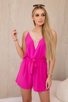 Kombinezon krótki z ozdobną koronką różowy