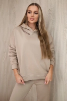 Komplet damska masełkowy bluza z kapturem i spodniami z paskiem fango