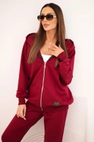 Komplet damski bawełniany z szeroką nogawką i bluzą na suwak bordowy