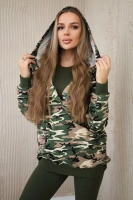 Komplet 3-częściowy moro bluza, top i legginsy khaki + zielony