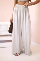 Spodnie damskie wiskozowe szerokie z gumką w pasie ciemno beżowe