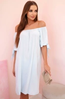 Sukienka damska z wiskozy z wiązaniem na rękawach niebieska