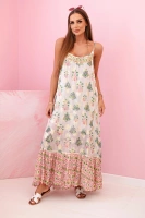 Sukienka damska na ramiączkach z marszczeniem i wycięciem z przodu beżowa