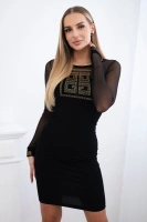 Sukienka dzianinowa ze złotym motywem z cyrkonii czarna