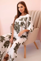 Komplet damski z bluzką z ozdobną klamrą i dopasowaną spódnicą beżowy