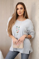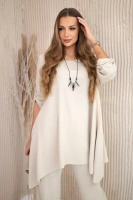 Komplet bluzka + spodnie z wisiorkiem ciemny beżowy