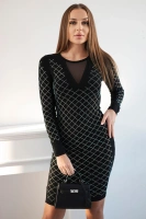 Sukienka dzianinowa ze srebrnym wzorem czarna
