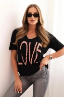Bluzka damska bawełniana z dekoltem V i nadrukiem LOVE czarna