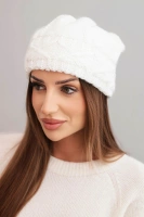 Czapka damska zimowa z wełną o grubym splocie warkoczowym K481 biała