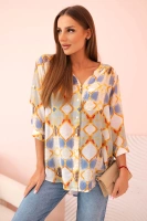 Koszula damska wiskozowa z rękawem 3/4 w akwarelowy wzór beżowa