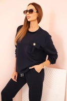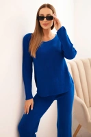 Komplet damski sweterkowy z szeroką nogawką i długim rękawem chabrowy