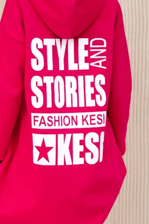 Bluza ocieplana z długim tyłem i kapturem fuksja