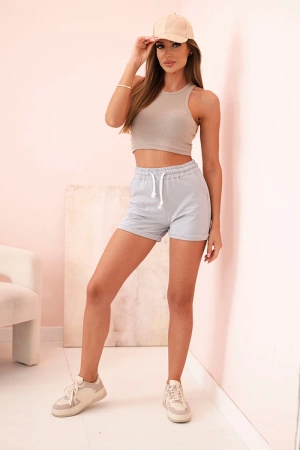 Spodenki damskie bawełniane z gumką i wiązanie w pasie szary melanż
