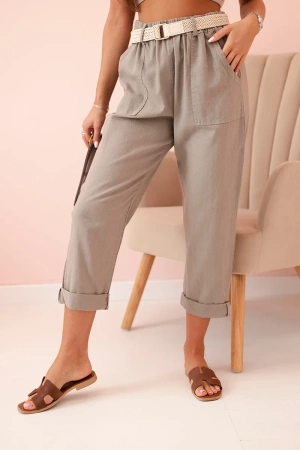 Lekkie i przewiewne spodnie damskie wykonane z naturalnej mieszanki lnu i bawełny to idealny wybór na cieplejsze dni. Model posiada elastyczny pas, który świetnie dopasowuje się do sylwetki oraz dołączony stylowy pasek, który dodaje całości charakteru. Nogawki zostały delikatnie podwinięte, co podkreśla casualowy, letni styl. Spodnie są niezwykle wygodne i funkcjonalne – pasują zarówno do codziennych, jak i bardziej eleganckich stylizacji.