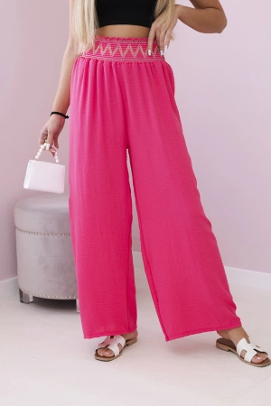 Spodnie z szeroką gumą w pasie to praktyczny i wygodny wybór na co dzień. Dzięki szerokiej gumie w pasie zapewniają one doskonałe dopasowanie do figury i komfort noszenia. Idealne na relaksacyjne spacery, domowe obowiązki czy casualowe spotkania z przyjaciółmi. Doskonale łączą wygodę z modnym stylem, a szeroka guma dodaje im oryginalności i lekkości. Te spodnie staną się szybko ulubionym elementem Twojej garderoby, pozwalając Ci cieszyć się komfortem przez cały dzień. Rozmiar jest uniwersalny i będzie odpowiedni dla Pań noszących rozmiar S, M lub L.