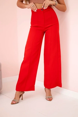 Prezentujemy Państwu modne spodnie. Spodnie posiadają szerokie nogawki w kant. Spodnie zapinane na guzik. Spodnie idealne do pracy i na co dzień. Spodnie wykonane są z wysokiej jakości materiału. Dostępne rozmiary: S, M, L.