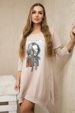 Sukienka z nadrukiem i rozkloszowanym dołem beżowa